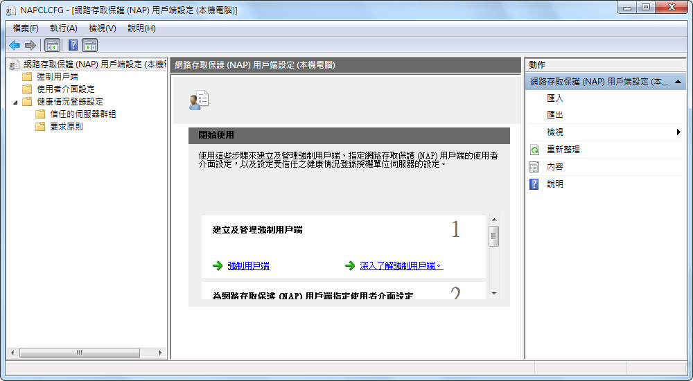 | 2 | 網路存取保護(NAP)用戶端設定(NAPCLCFG.msc) | |